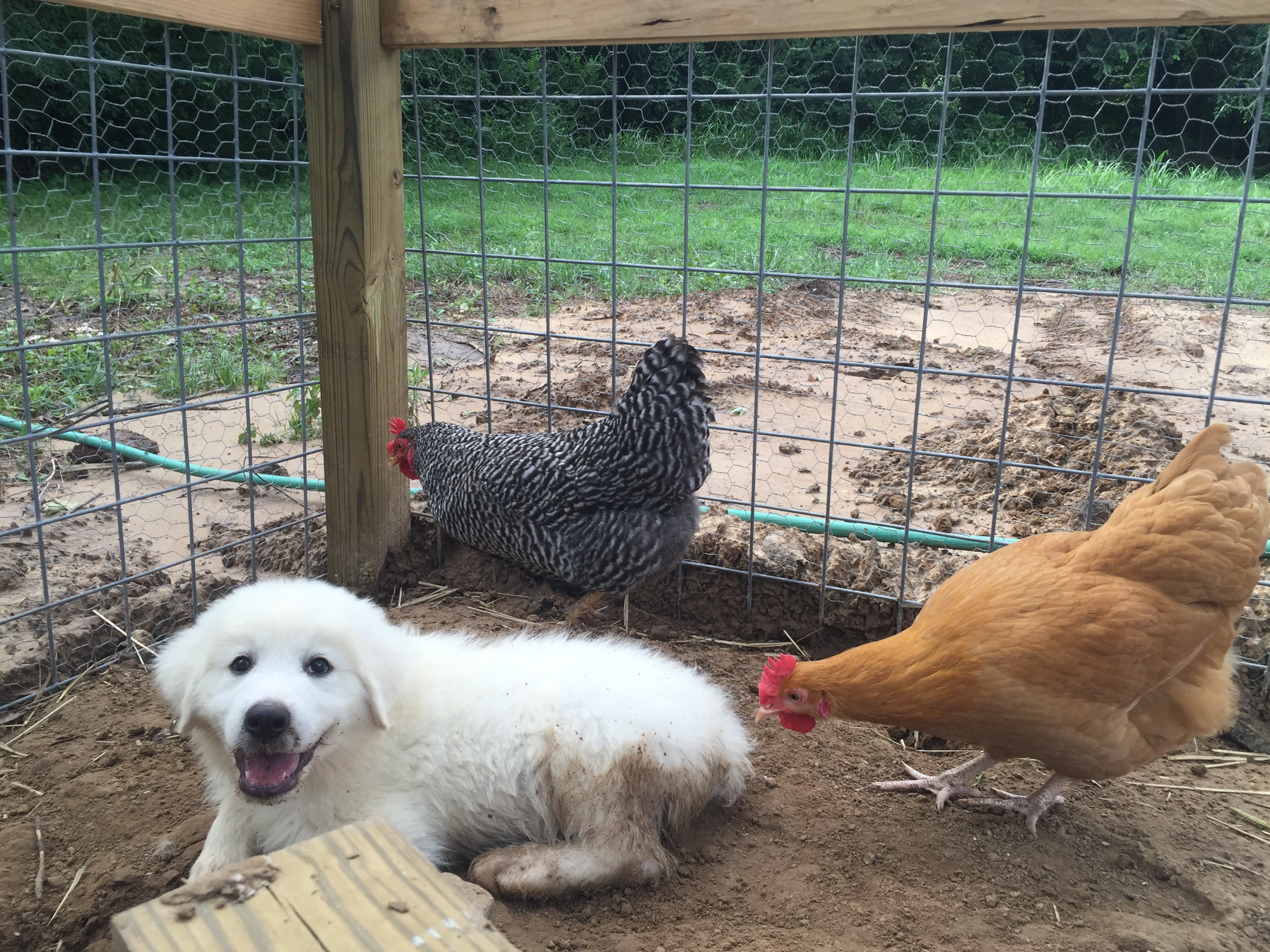 The Pooch is a Great Pyrenees- Known for their amazing ability to gaurd small livestock. While raising a puppy wasn’t on the to-do list this month, we were given an offer that was hard to refuse.