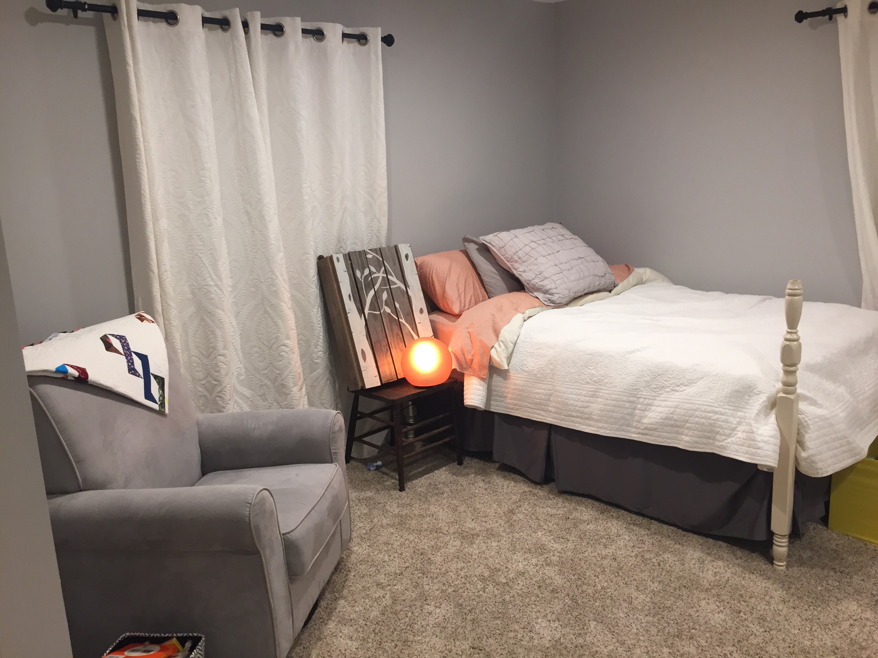 This room has become a place of rest (maybe just for us, Theo is still learning the concept) and lots of laughter. Easily our favorite place in the house. But every once in a while I get visions of the old room. Not the mold filled, rotted floor, peeling paint room, but the room I remember growing up. The games in the closet where Theo’s clothes now hang. The table where I remember Grandpa telling me he didn’t like spinach, the chair he sat in and played goofy hiding games with my toys. The recliner where Granny spent so many of her last year’s reading, watching TV, telling stories. It was the room we all lived in. Every uncle, every aunt, every cousin has a memory of this room. The life of our family is in these walls and I’m forever grateful that new paint and floors cannot cover over those memories.