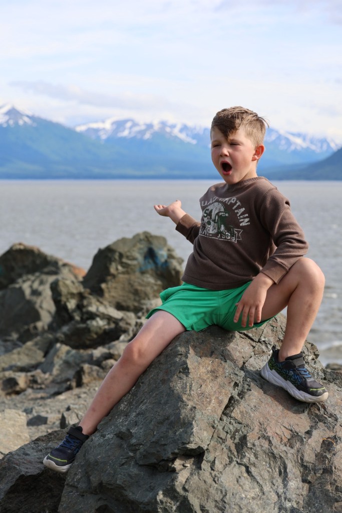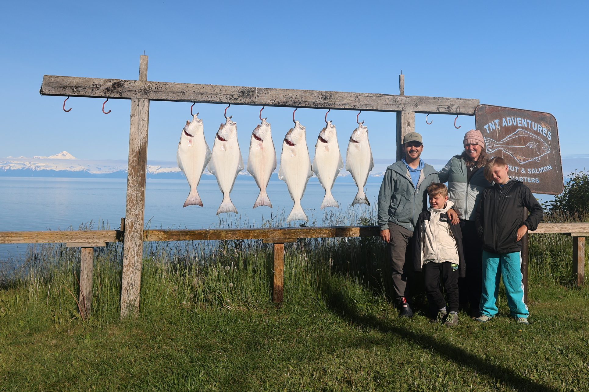 So we started our fishing adventure in Homer. Unsure of how the kids would do out on the open ocean—Ellie gets a little seasick—we booked a half-day fishing boat just for our family to get our sea legs moving. We woke up very early, geared up with coats, snacks, Dramamine, and a whole lot of encouragement and positive thinking. Then we met up with a wonderful local, Thad, and his son Dawson from TNT Adventures, for a day on the water.