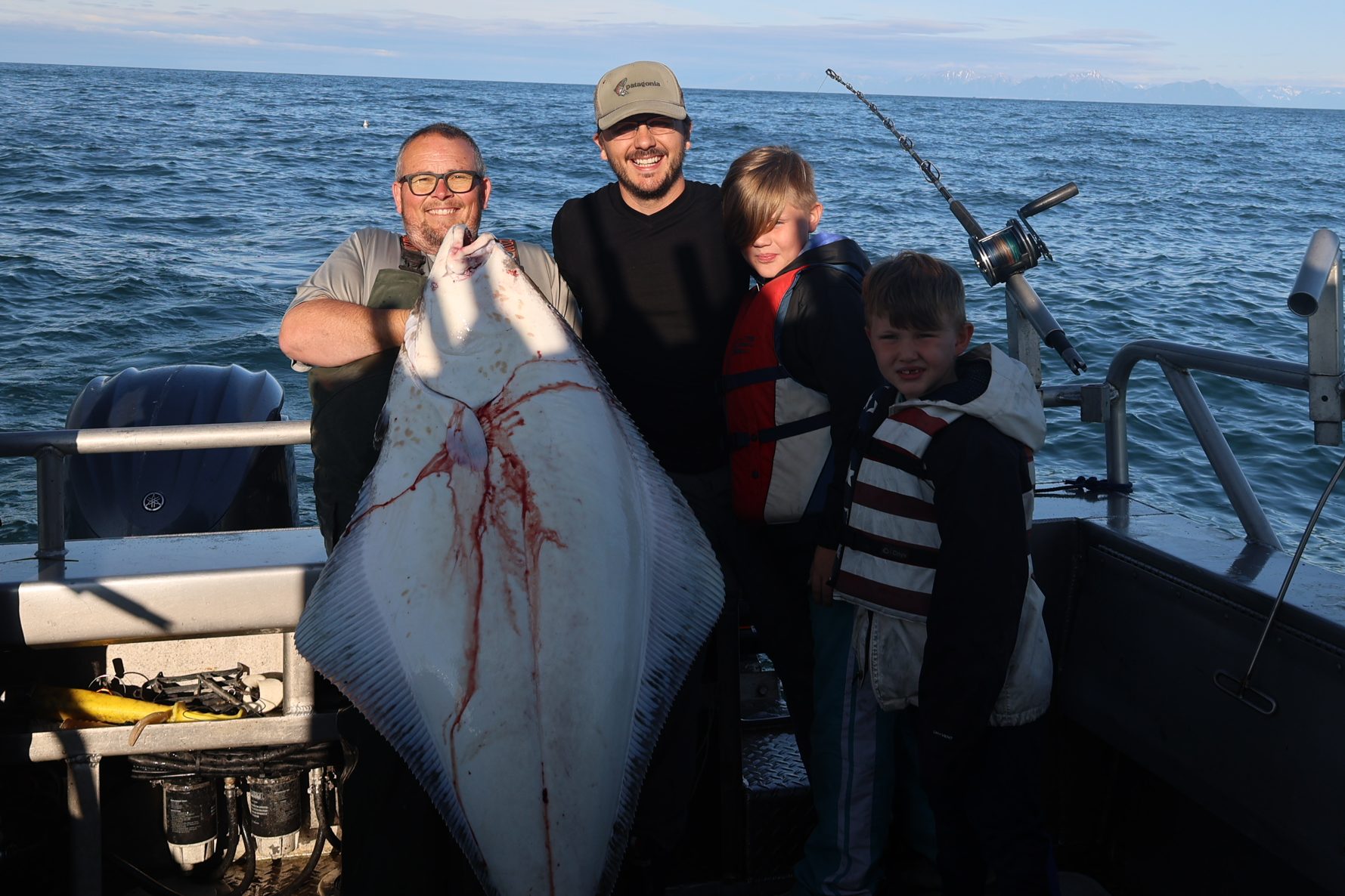 Then came Day 2. Ellie and I sat this one out because I wanted her to have the success of open-water boating and fishing fresh on her mind. The boys headed out. Again, by 9:00 AM, they had limited out with six halibut—but this time, they reeled in big fish. They went to a different part of the bay and caught fish after fish, each one seeming bigger than the last, with the largest weighing in around 125 pounds and measuring 5’2″.