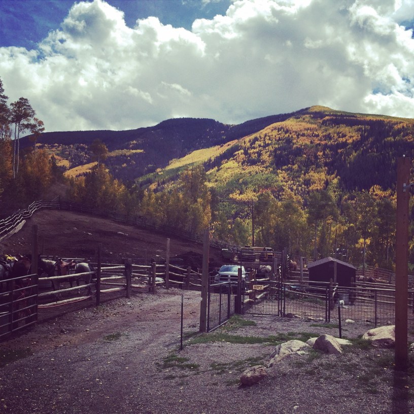 So there we were…. On top of a mountain, riding horses in the beautiful landscape of the Rockies. Fall colors all around us. It was just as we had hoped. It was a last story from the beautiful state we’ve lived in for so many years